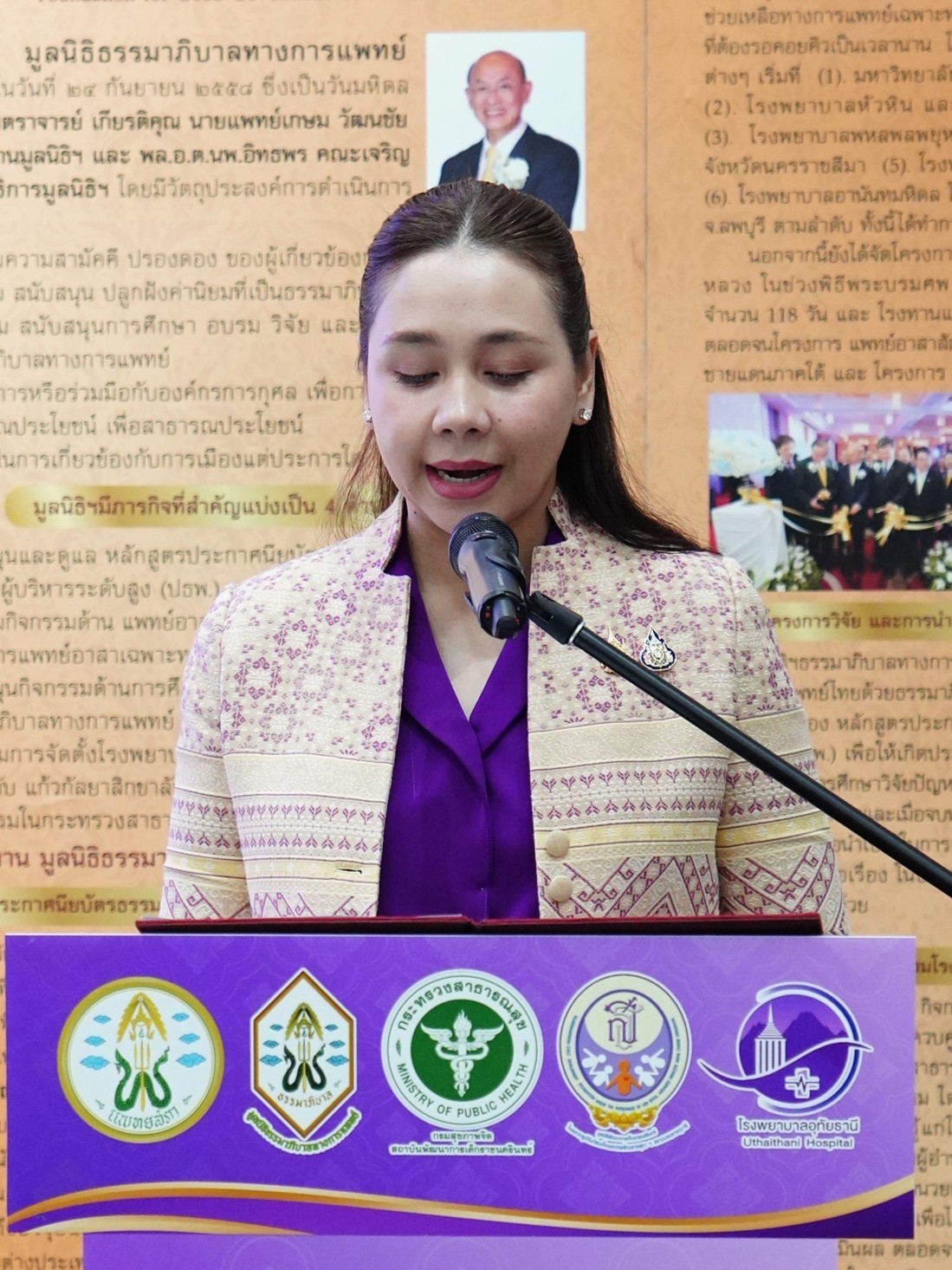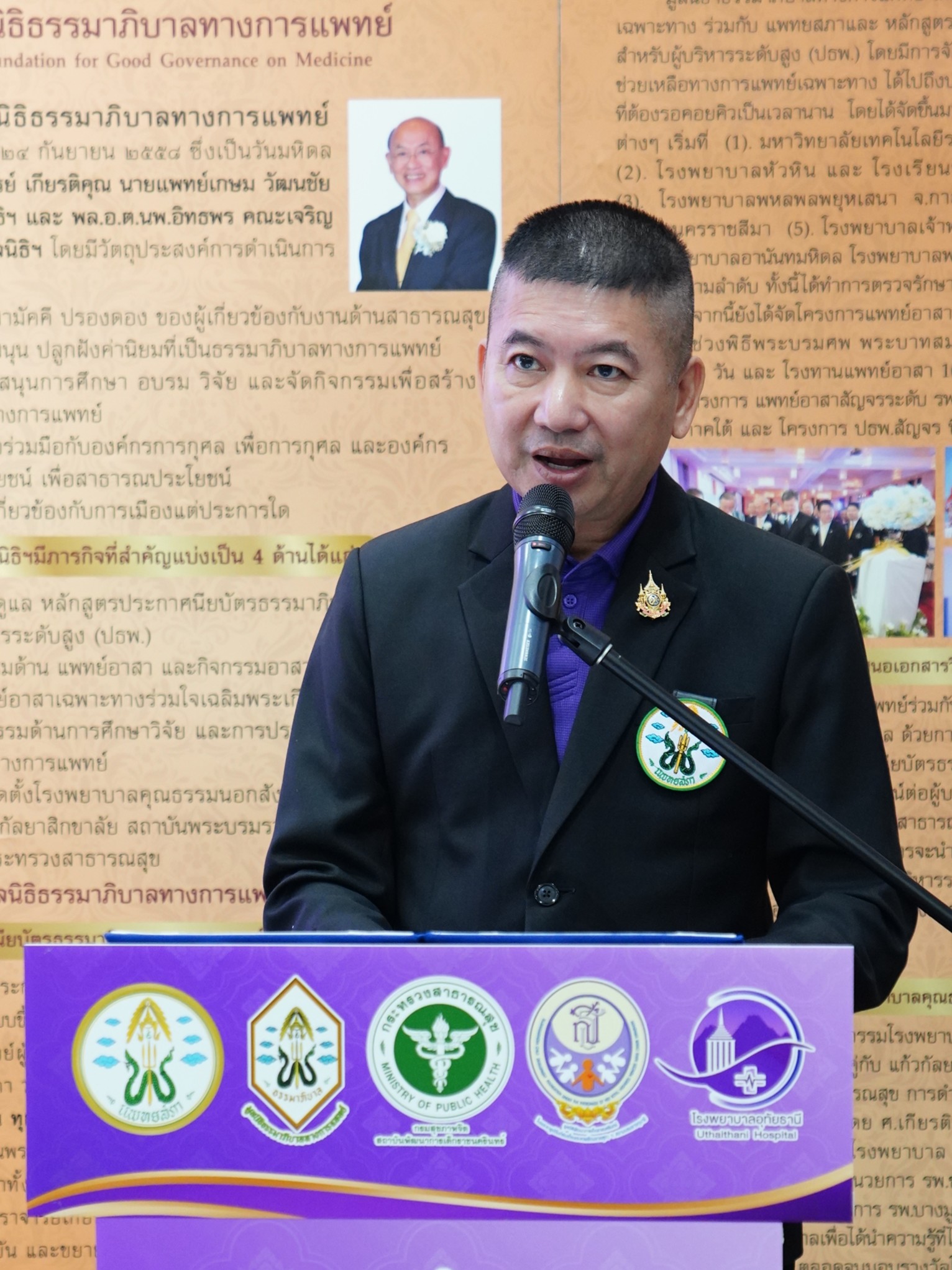เมื่อวันที่ 6-7 กันยายน 2568 มูลนิธิธรรมาภิบาลทางการแพทย์ ร่วมกับ แพทยสภา โรงพยาบาลอุทัยธานี สถาบันพัฒนาการเด็กราชนครินทร์ และมูลนิธิพัฒนาการเด็กราชนครินทร์ ในพระราชูปถัมภ์ สมเด็จพระเทพรัตนราชสุดาฯ สยามบรมราชกุมารี และนักศึกษาหลักสูตรประกาศนียบัตรธรรมาภิบาลทางการแพทย์ สำหรับผู้บริหารระดับสูง รุ่นที่ 1 (ปธพ.1) ได้จัดโครงการแพทย์อาสาเฉพาะทางร่่วมใจเฉลิมพระเกียรติสมเด็จพระกนิษฐาธิราชเจ้า กรมสมเด็จพระเทพรัตนราชสุดา ฯ สยามบรมราชกุมารี เนื่องในโอกาสทรงเจริญพระชนมายุ 70 พรรษา 2 เมษายน 2568 ณ โรงพยาบาลอุทัยธานี จังหวัดอุทัยธานี